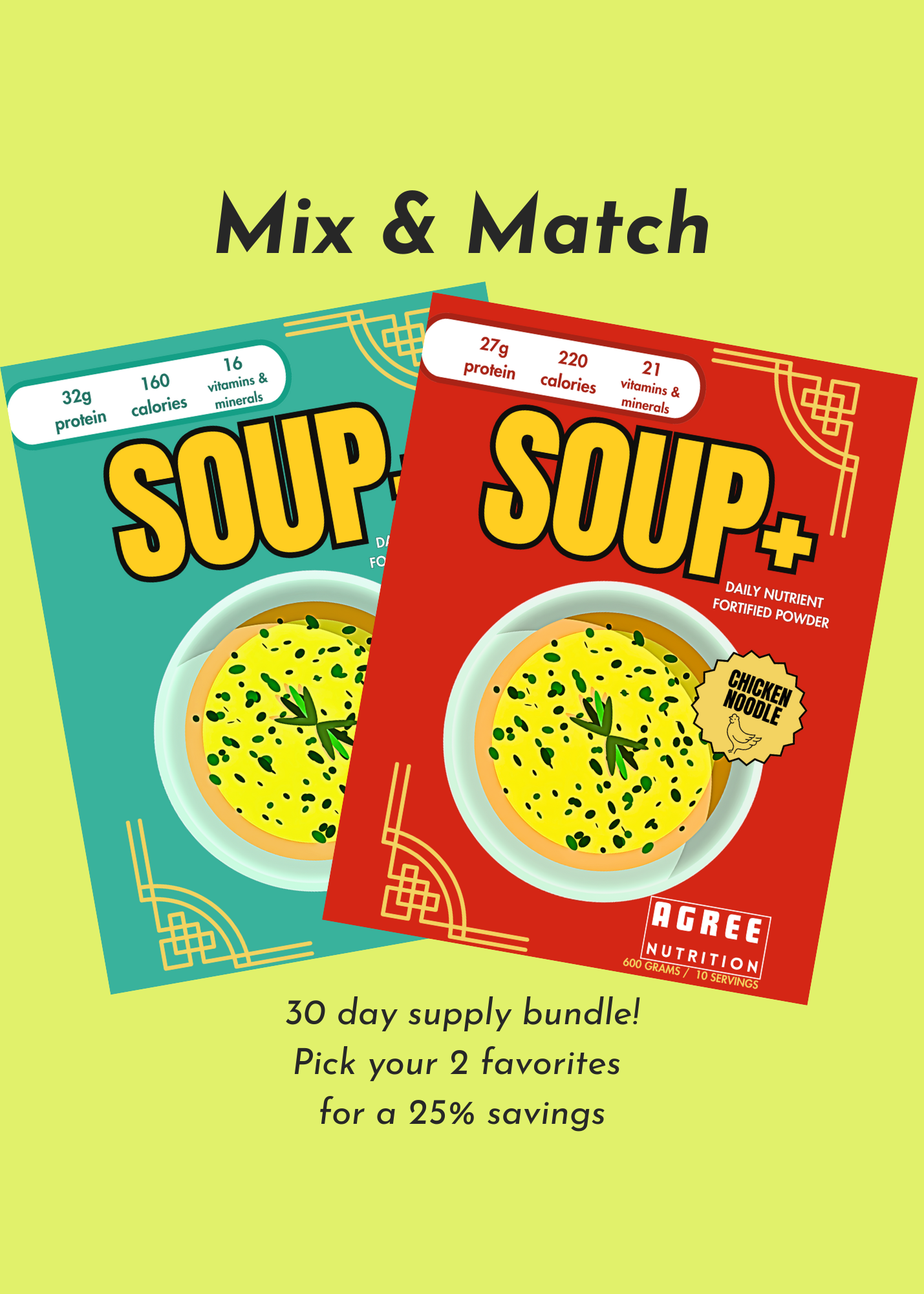 Soup+ Variety Pack – Hearty Chicken & Miso Balance (20 Total Servings)